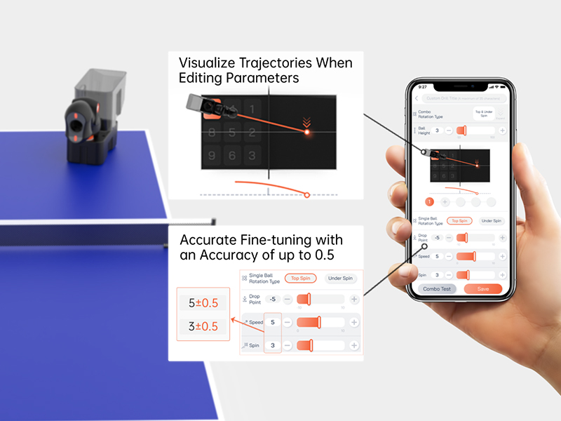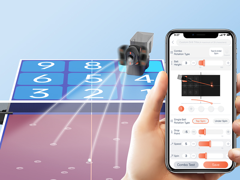 Place the machine anywhere on the table—even near the net—and fully customize spin, speed, oscillation, and trajectory. Set and visualize every shot instantly in the app with 0.5-unit precision.